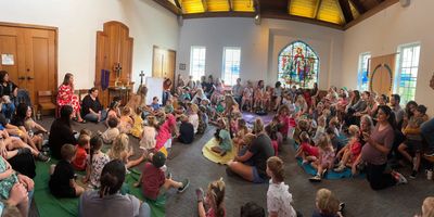 We make prayer an important part of each day in every classroom. Christian values and principles, as well as stories from the Bible are incorporated in our day-to-day in various ways. On Wednesdays, Older Twos, Threes, Pre-K and Kindergarten classes attend Chapel where they are lead in song by Ms. Jennifer, participate as acolytes (Pre-K and Kindergarteners), and learn stories from the Bible taught by Rev. Lo. Families are welcome and encouraged to attend Chapel with their Little Saint(s)!